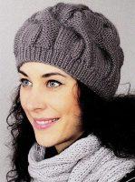Как видим, схема работы довольно проста. Действий не так уж и много. Следует лишь внимательно изучить схему и описание. Готовый берет украшенный косами представлен на фото. Эта модель придется по нраву как молоденьким девушкам, так и женщинам постарше. Выбрав для работы спицами пряжу интересного цвета, у вас получится собственное уникальное и неповторимое изделие.