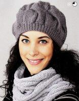 Следующая модель – не менее интересный пример для вязания объемного берета с большими косами. Этот вариант имеет более объемный и выпуклый рельеф. Рассмотрим основные этапы по вязанию спицами данного аксессуара.