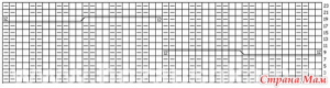 Сделайте набор петель первого ряда (Р) в количестве 102 единицы. Один раппорт содержит 24 петли (П). Они отделяются друг от друга двумя П с каждой стороны. Входят в общее количество также 2 кромочные: