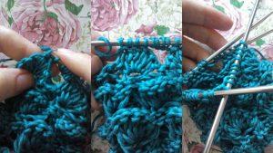- Второй – сначала делаем накид – следующую петлю вяжем изнаночной – снова накид – изнаночная – так весь круг;
