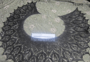 Эта необычная шаль имеет небольшие размеры, приблизительно как платок или косынка, что видно из следующих фотографий: