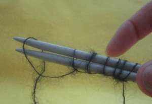 Выполняем набор петель первого ряда в количестве 309 единиц. Набор петель выполняется на обе спицы одновременно. Набранные петли (П) должны быть свободными, их ни в коем случае нельзя затягивать. От свободы набора зависит красота узора по краю накидки: