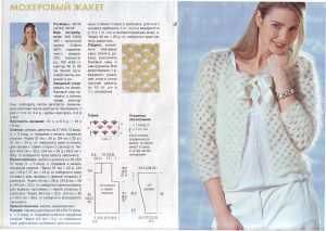 Очень удобная и красивая кофта-жакет из мохера с ажурным узором прекрасно подойдет для весенне – осеннего периода. Связать кофту из мохера совсем не сложно, а описание предоставлено для разных размеров, что позволяет просто выбрать свой и приступить к работе.
