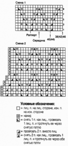 - Вяжется рисунок по схеме 1 с началом в соответствующем размере месте.