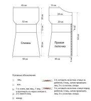 Для спинки выполним набор девяноста шести петелек на спицы №4 и вяжем первые четыре полосы платочным вязанием. После этого продолжаем работу по схеме№1, и при достижении длины тридцать сантиметров можно переходить на узор схемы №2. На высоте в сорок два сантиметра узор меняем на №3. Вместе с этим узором следует прибавить с каждой стороны через один ряд четыре раза по одной петле. Через тридцать сантиметров от рукава все звенья закрываются. Для правой полочки набор петель в количестве шестьдесят четыре делаем на спицы №4. После набора вяжем первые четыре ряда платочной вязкой. Затем вязание продолжается таким способом, когда первые семь выполняются ИП, а остальные по схеме №1. Дойдя до высоты тридцать сантиметров, изменить узор на №2. Первое отверстие для пуговиц выполним на высоте тридцать два сантиметра. Второе отверстие должно располагаться через девять сантиметров от первого. При длине полотна в сорок два сантиметра, переходим к узору №3.