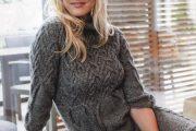 Последними вяжутся рукава. На спицы набирается семьдесят шесть п. (семьдесят четыре и две кромочных). Дальше идет семь см резинки два на два. После чего продолжается вязание основного узора. После 2 см, вам необходимо прибавить для скосов рукава по обеим сторонам одну петлю. Затем нужно провязать прямо два см, а чтобы сформировать окат рукава, вам следует закрыть по обеим сторонам через каждые четыре ряда 1 раз по 5 звеньев, 10 – по 1. Дальше через каждые два: 4 раза по 1, во всех вторых: з раза по 3 и раз – по 4. Петлицы, получившиеся в остатке, закрываются одновременно.