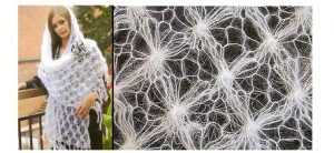 Паутинка из тонкого мохера идеально подходит для вязаных шарфов и палантинов. Опытные рукодельницы, глядя на узор, сразу поймут, что тут 5 вытянутых п. провязаны вместе, а потом из одной п. вытянуты 5, между мотивами одна лицевая: