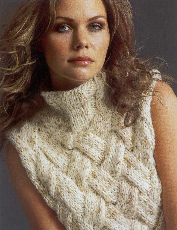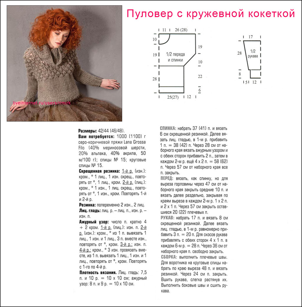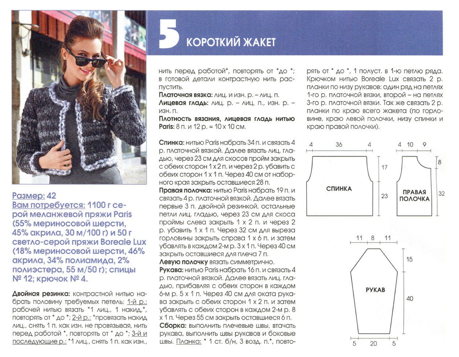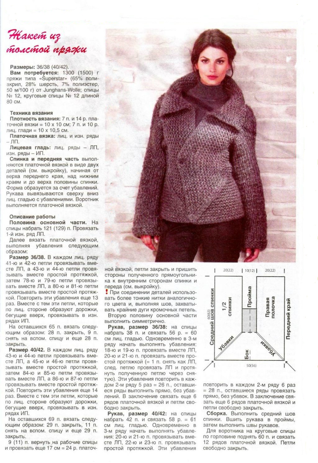 Плотность вязки составляет 13 п. х 18 р. = 10 х 10 см спицами № 7 и лицев. гл. и 17 п. х 18 р. = 10 х 10 см спицами № 7 узором с косами А.
