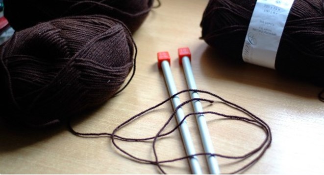 - толстая пряжа (100% меринос, 55 метров на 50 грамм) серо-коричневого цвета – 14 (15) моточков;
