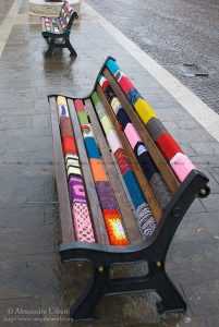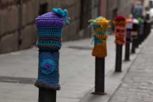 Специалисты в этом виде модного искусства именуют себя, как «бомбардировщики пряжей». Вместо украшения улиц городов при помощи цветных мелков и красок, энтузиасты вязаного граффити используют разноцветные вязаные изделия. Это искусство производит просто ошеломляющий эффект. Городские улицы, парки и площади оживают, становятся неповторимыми, яркими и красочными.