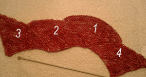 - Для симметричности полотна 4 чешуйка набирается от кромочных п. 1 детали, с другой стороны от свободного края.