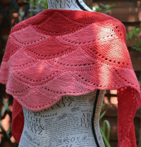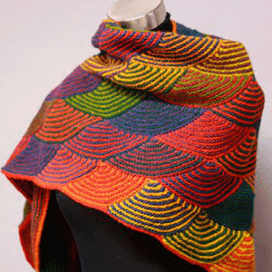 Все мотивы вяжутся платочной вязкой (во всех р. лицевые). Расположение чешуек по принципу треугольника дает возможность связать оригинальные модные шали.