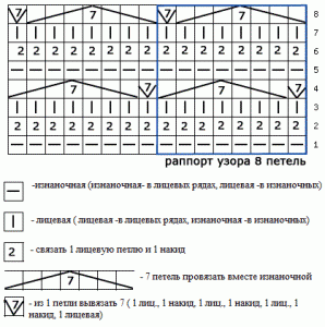 Схема с описанием вязания узора “чешуйки”