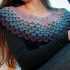 Еще один оригинальный узор спицами – крупная «Чешуя». Образуется рельефное полотно благодаря разбросанным накидам, и провязывания 2 п. вместе в определенных точках.