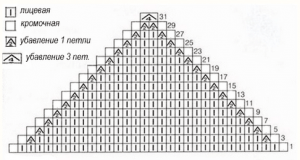 - Набирается определенное количество п., и фигура формируется при помощи убавления по 2 п. вместе с каждого края.