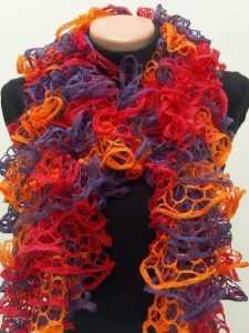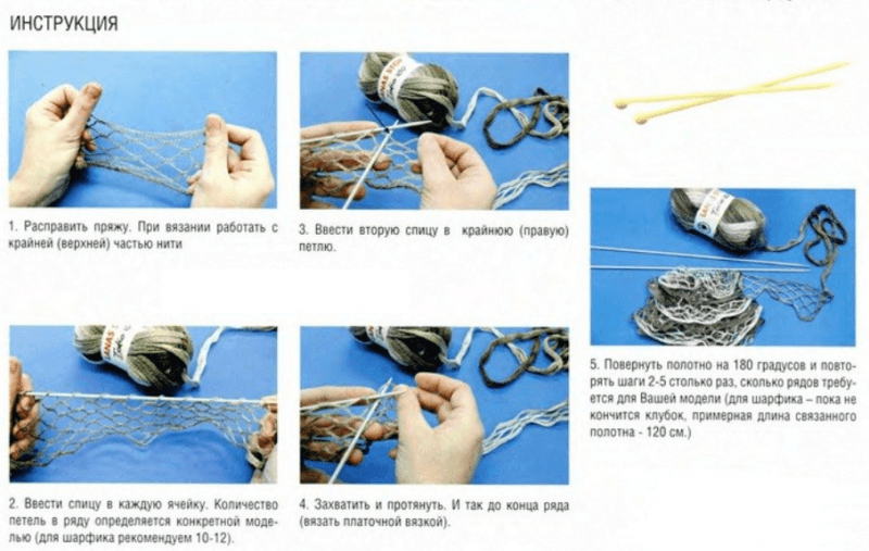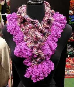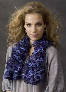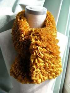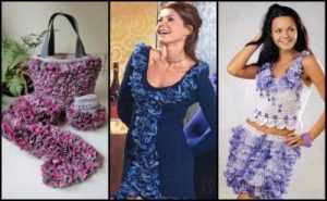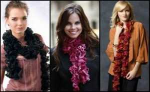 Если вам нужно связать обыкновенный шарфик, то потребуется набрать от 10 до 12 петель. В результате получаются эффектные шарфики из воланов и рюшей. А вот так выглядит шарф, когда подобная пряжа вяжется в комбинации с простыми нитками.