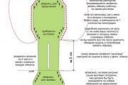 И, нитью другого цвета вяжем штанишки, следуя рисунку «Рис».
