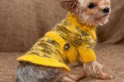 Одежду для питомцев вяжут спицами, или крючком, из натуральной шерсти, или хлопка, на зиму, или даже на лето. Породы собак, кожный покров которых не имеет шерсти, нуждаются не только в теплых нарядах в холодное время года, но и в легких, защищающих от перегрева и солнечных ожогов. Для этого вяжут кофты, или комбинезоны,из очень тонкой хлопковой пряжи, светлого цвета. Помимо одежды, нередко вяжут обувь. Вязанные сапожки и ботиночки, с уплотненной подошвой, спасают от переохлаждения, а также, защищают от вредного воздействия соли и химических реагентов, на подушечки лап собаки.