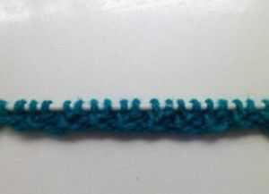 - 3 р. – поменяйте цвет основного материала на контрастный, а потом вяжите 1 лиц. п., изн. п., снова лиц. п., далее снимите петлицу за работой, и так до самого конца;