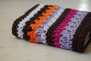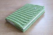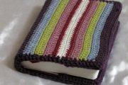 Связав двадцать два сантиметра, все звенья можно закрывать. Затем, нужно по бокам по три сантиметра загнуть связанное полотно и вставить книжку в готовую обложку.