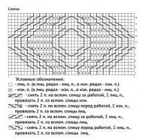Для рукавов набираются воздушные петельки в количестве 42. Далее провязывается небольшая резинка из лицевых и изнаночных элементов. После этого, продолжайте вязать попеременно изнаночным и лицевым способом. Используйте вспомогательную спицу для снятия и добавления петлиц в ходе вязания, чтобы получить интересный узор.