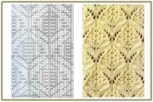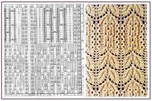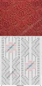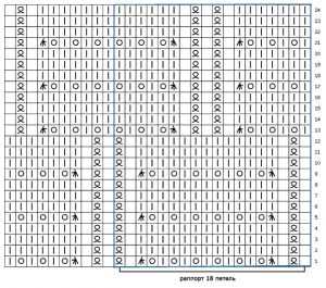 Данный ажур имеет раппорт, состоящий из 18-ти петель по ширине и 24-х рядов по высоте.