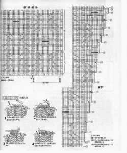 Если посмотреть японские журналы, то можно увидеть, что ажур, применяемый в изделиях, как правило, представлен отдельной схемой. И это значительно облегчает процесс вязания. Кроме того, привычные нам узоры отображаются с некоторыми особенностями.