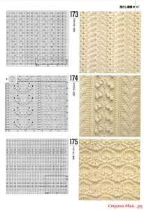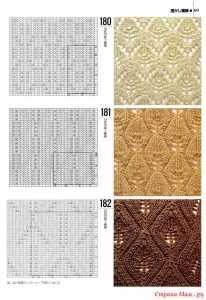 Поэтому предлагаем рассмотреть схемы некоторых узоров. Конечно варианты японского вязания представлены многочисленными схемами. Все их, к сожалению, нельзя вместить в пределы одной статьи. А значит остановимся на отдельных часто встречающихся примерах.