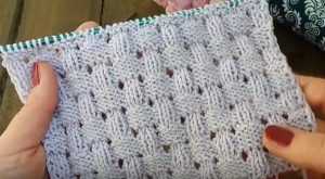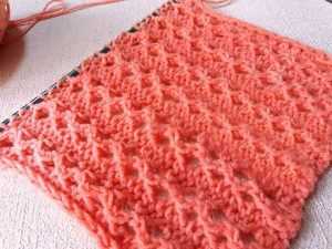 Представлен в размере 4 элемента на 4 рядочка. Чтобы левый край работы был симметричным, к общему числу набранных петель следует добавить еще две. Этот мотив можно начинать с рядка под номером 3 выполняя дальше их дублирование.