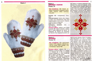 Продолжаем вязание варежек. После манжета меняем основной узор. Теперь работа продолжается лиц. гладью. Это означает, что работаем одними лиц. петлицами. В первом же ряду на каждой сп. необходимо прибавить по 2 п. Таким образом, варежка будет свободно размещаться на руке.