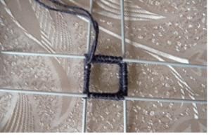 Набираем 40 петелек на наш рабочий инструмент. Набор производим на 2 инструментах, затем одну из них вынимаем и равномерно распределяем петельки между четырьмя. Замыкаем кольцо – связываем концы пряжи: