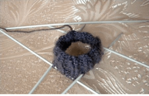 С каждым кругом количество петель будет уменьшаться, пока не останется по 2 шт. на каждой. Их закрываем, протягивая нитку через них и затягиваем узелок.