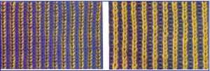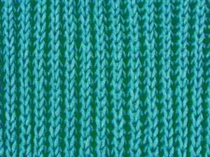 Здесь главное – не запутаться в нитках. Выполнять работу над этой патентной резинкой будем двумя клубками. Суть в том, что каждая полоска вязания вяжется дважды, только попеременно то одними нитками, то другими. Используем круговые спицы.