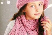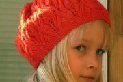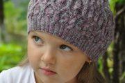 Переходим к описанию вязания данного берета для девочки. В начале набираются петли в количестве двенадцати штук. Далее, их необходимо распределить по четырем спицами (по три звена на каждый инструмент). После этого идет вязание основного узора до тех пор, пока на каждом из инструментов не сформируется тридцать пять петлиц. Дальнейшая работа идет согласно такой схемы: *четыре р. ЛГ, еще 4 – ИГ*, повторение *_*. Теперь провязывают 4 р. рельефным узором и пять р. ИГ. Обратите внимание, что при каждом изменении узора в первом р. нужно делать убавки петелек, вывязывая по две совместно через каждые десять п. На завершающем этапе остаточные петельки закрываются и детский берет готов к примерке.