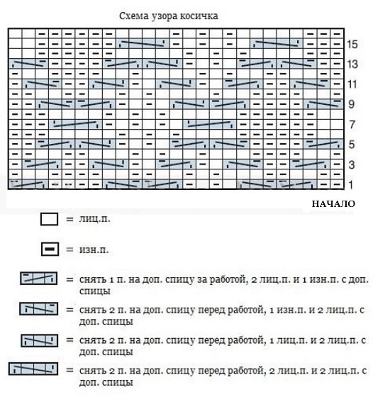 2р.: над лицев. вяжем изнаночн., над изнаночн. – лицевые п.; - ажурный рисунок:
