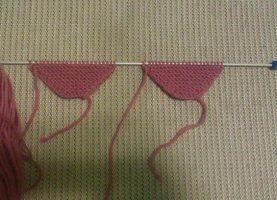 Мастер-класс вязания для женщин будет начинаться с набора шести петелек, из которых делают платочную вязку. В новых линиях следует выполнять увеличение звеньев на одну штучку с двух сторон. Продолжайте вязать до тех пор, пока количество звеньев не вырастет с шести до двадцати. После этого прибавления делать не нужно. Продолжайте дальше выполнять мастер-класс до той длины ушка, которое вам необходимо. На фото показан этот этап работы.