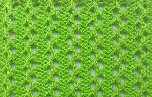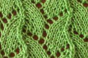 Первая схема чем-то напоминает по своей структуре резинку. Для того, чтобы связать небольшой образец, необходимо набрать тридцать две петельки и работать следующим образом: первый ряд выполняется чередованием двух изнаночных петлиц и двух лицевых. Так вяжут до самого конца. Следующая полоса, как и все четные начинается с 2 лиц. п., а затем вяжите 2 изн. п. Новая линия вяжется так: две изн., затем накид, 2 совместные лицевые в левую сторону и две изн. петли. Затем вяжите также, как и в предыдущей полосе, только две совместные петлицы должны быть с уклоном в правую сторону. В седьмом ряду схема повторяется с третьего.