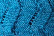 Чтобы сделать спицами образец последнего узора «змейка», наберите две кромочные плюс звенья, которые должны быть кратны цифре девять и еще 2 п. для симметрии. В виде примера, сделайте двадцать две петельки. Затем провяжите нулевой наборной р. Далее начинайте с кромки, 20 и.п. и кромочная. Третья линия вяжется с краевой, потом 2 и.п. и 2 лиц. п., один наброс, три совместные лицевые за переднюю стенку, один накид, 2 л. и 2 и.п., кромка. Не забывайте, что все линии начинаются и заканчиваются кромочной, поэтому далее по тексту они не будут упоминаться. Четвертый р.: две лиц.п. и две и. п., потом наброс, который делали в предыдущем ряду – вяжут изнанкой, 1 и. п., снова выполните провязывание накида, как описывалось ранее, 2 и. п., 2 л.п. Теперь вяжите новый р.: 2 и.п., две совместные лиц. способом за переднюю стенку, наброс, 3 л. п., наброс нити, две совместные лиц. за переднюю стенку и 2 и. п. Завершающий ряд выполняется по такой схеме: 2 л.п., 1 и. п., наброс, который выполняли в предыдущей полосе вяжется изнанкой, 3 и. п., снова следует сделать накид, 1 и. п. и 2 лиц. п.