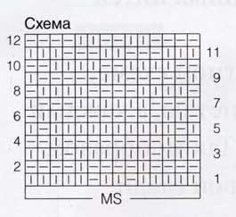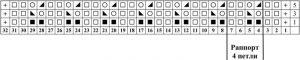 Число петлиц должно быть кратно цифре четырнадцать плюс две кромочные. Схема изображает, как лиц. полосы, так и изн. Согласно этому вы должны вязать узор. Начинайте работу с одной кромки и заканчивайте тоже ею. Раппорт орнамента постоянно повторяется с первого по двенадцатый ряд.