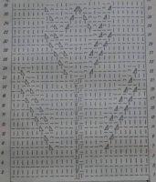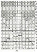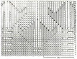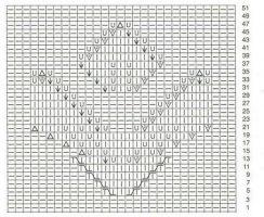 - На схематичном рисунке показаны только лицевые ряды. Изнаночные надо вязать следующим образом: петельки провязывают строго по рисунку, а все накиды делают изнаночными;