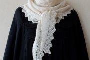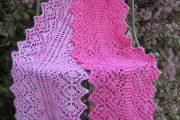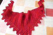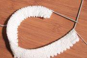 Еще один вариант зубчиков, который можно связать, будет выглядеть намного крупнее. Данный способ оформления не позволит краям изделия сворачиваться, особенно, если вещь связана платочной вязкой. Для работы понадобится пряжа любого цвета и спицы под номером № 2 или 2,5. Наберите необходимую численность петлиц и оставьте конец пряжи достаточной длины. Так как в новом ряду вы должны будите вязать по 2 лиц. п. двойной ниткой. Первая нить будет основной, а вторая будет та, которую вы оставили. После этого количество звеньев уменьшится в два раза.