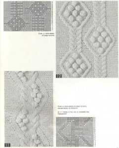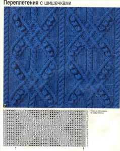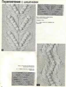 В заключение предлагаем несколько вариантов комбинирования шишечек с другими узорами и их схемы. Самым распространенные узоры – это соединение их с косами.