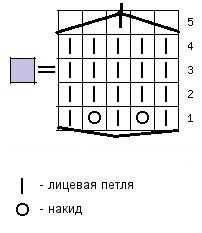 Принцип работы здесь тот же, только вместо трех вывязывается пять петелек из одной. Это хорошо видно на схеме вязания.