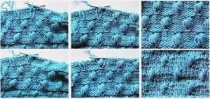 Вязать узор можно, как лицевыми, так и изнаночными. Для создания контраста лучше выполнять лицевые шишечки на изнаночном полотне и наоборот.