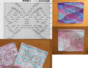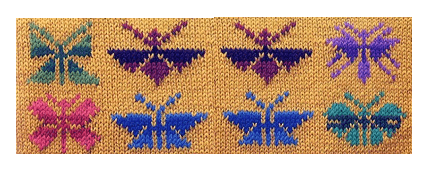 В заключение можно поднять настроение рукодельницам и представить им бабочек, вязанных пряжей секционного крашения.