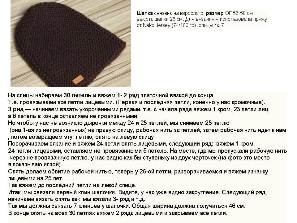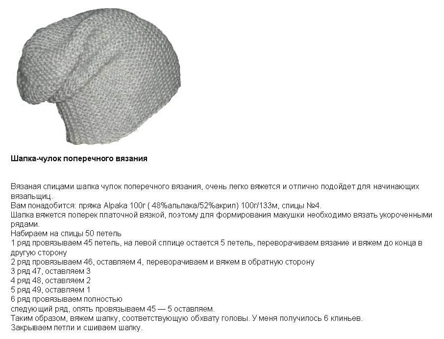 Набираем крестообразным набором в две нити 48; 54 п., переходим на круговую вязку, распределив все петельки на четыре спицы. Вяжем вкруговую 13 р. резинкой.