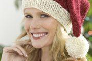 Первый вариант – это шапка колпак простой вязки из светлой пряжи с помпоном. Для вязания спицами данной модели, вы можете выбрать совершенно любой цвет нити, подходящий именно вам.