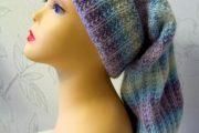 Переходим к описанию вязания, на основе которого создается оригинальная шапка колпак спицами. В начале набирают петли на спицы три с половиной миллиметра, в количестве семидесяти пяти штук. Далее следует вязать «Путанку» на протяжении одиннадцати сантиметров. После этого, провязывают прямо четырнадцать сантиметров лицевым вязанием. Теперь можно начинать делать убавления по началу и завершению всех шестых рядов по одной петлице.