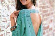 Уже много лет модели платьев и кофточек с открытой спиной находятся на пике моды и чрезвычайно популярны. Именно поэтому любая выкройки и схема вязаных спицами моделей с вырезом очень востребованы у модниц. Данный урок мы посвятим именно такой модели кофточки, которая имеет открытую спину. Такая кофта, которая связана спицами, производит неизгладимое впечатление благодаря глубокому вырезу и сетчатому узору с отверстиями. Эту модель можно носить только в теплое время года из-за выреза на спине и еще потому, что она изготовлена из хлопковых ниток. Необходимо также отметить, что вам будет не очень просто определиться, куда именно можно пойти в такой кофточке. В офис вы ее одеть не сможете, потому что будете выглядеть слишком экстравагантно. А вот в гости к близким друзьям, на прогулку в парк, или в любое место для отдыха в такой кофточке вполне можно выйти.