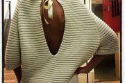 В уроке присутствует схема выкройки, которая будет основой для вязания. Эта кофта является очень эффектной благодаря крою «Кимоно», приятной к телу хлопковой пряже, вертикальным цветным ажурным полосам, а также глубокому вырезу на спине. Для рукоделия потребуется двести граммов хлопковой пряжи двух разных подходящих друг к другу оттенков, круговые спицы №3, и прямые спицы №3,5. Чтобы связать сетчатый узор данной модели, надо выполнить: